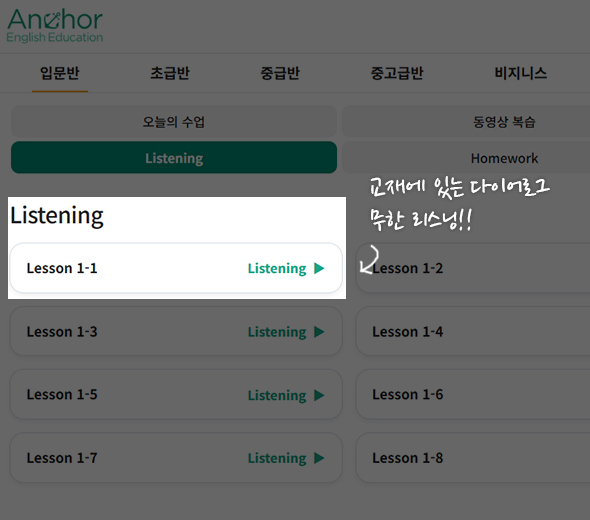 (동영상 복습, 단어장, 리스닝/스피킹 연습 등등, 앵커 정규 학생은 당연히 무료!)