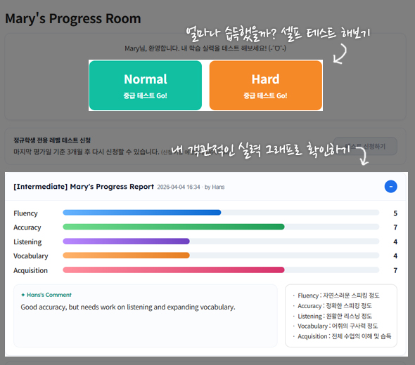 내 실력을 객관적으로 파악 할 수 있는 학생 레벨 평가도 새롭게 단장 되었습니다.